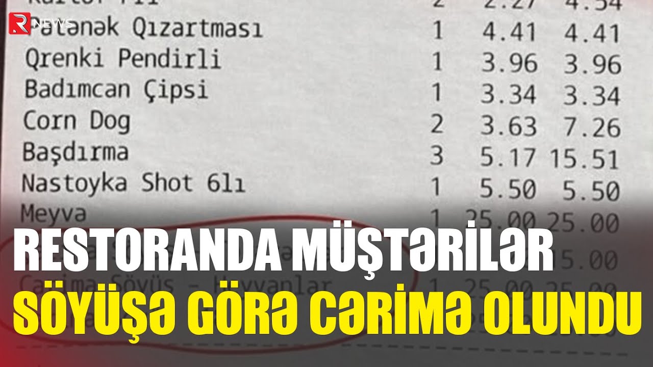 Bakı restoranlarından birində müştərilər söyüş söydükləri üçün cərimə olunublar. RTV Milli istinadən xəbər verir ki, müştərilər yekun hesab ödənişində əlavə pul ödəməli olublar. Belə ki, hesabda üç fərqli növ söyüşə görə cərimə yazıldığı göstərilib. Ümumilikdə söyüşə görə müştərilər əlavə 65 manat cərimə ödəməli olublar.
